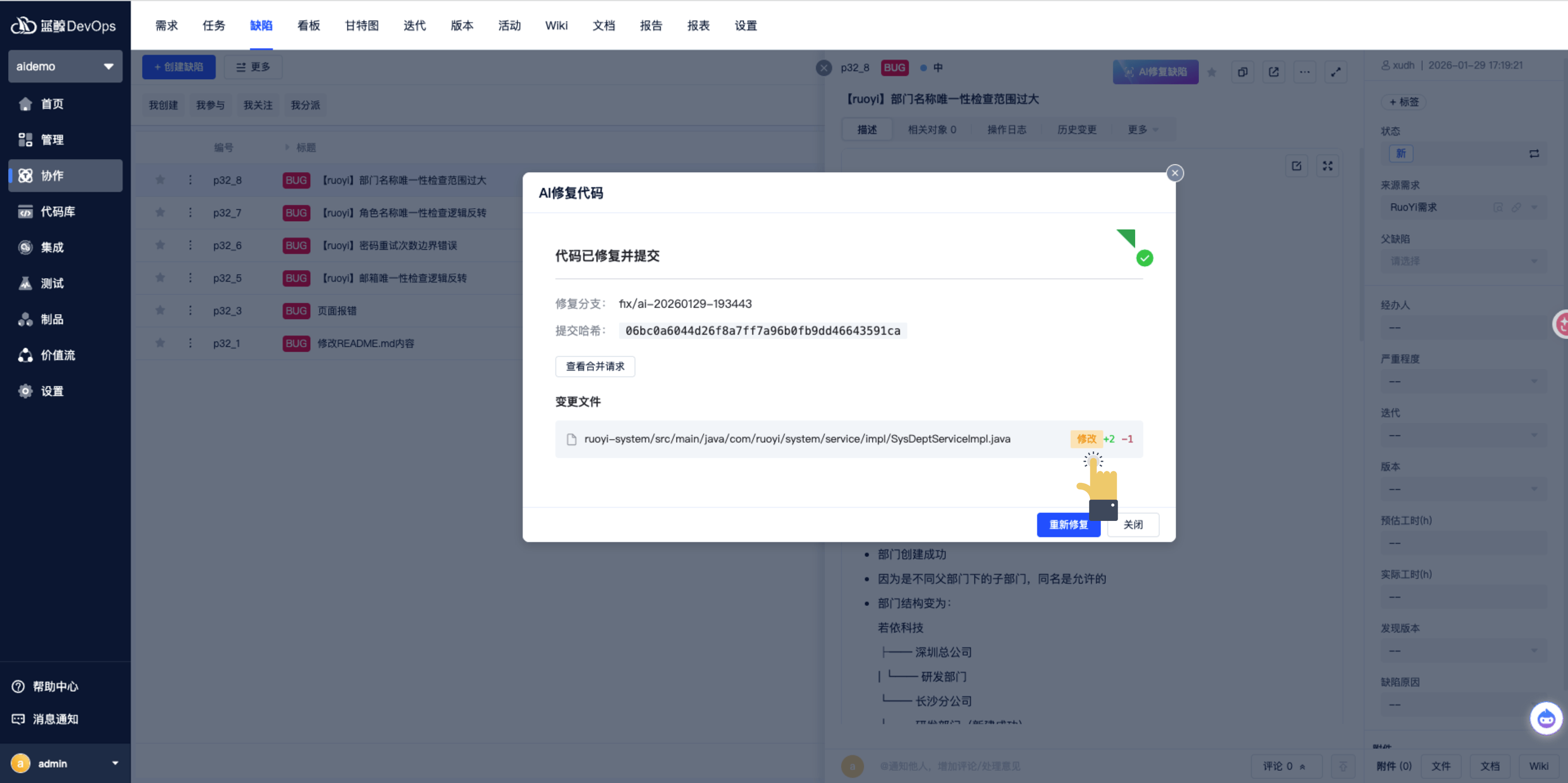 1)提交缺陷(CTeam):营业人员说清问题场景和预期结果,自从处理分支联系关系、流水线失败等断点问题,从动跑完“修复 - 测试 - 摆设 - 归并”全流程,生成的代码贴合项目气概取营业逻辑,
